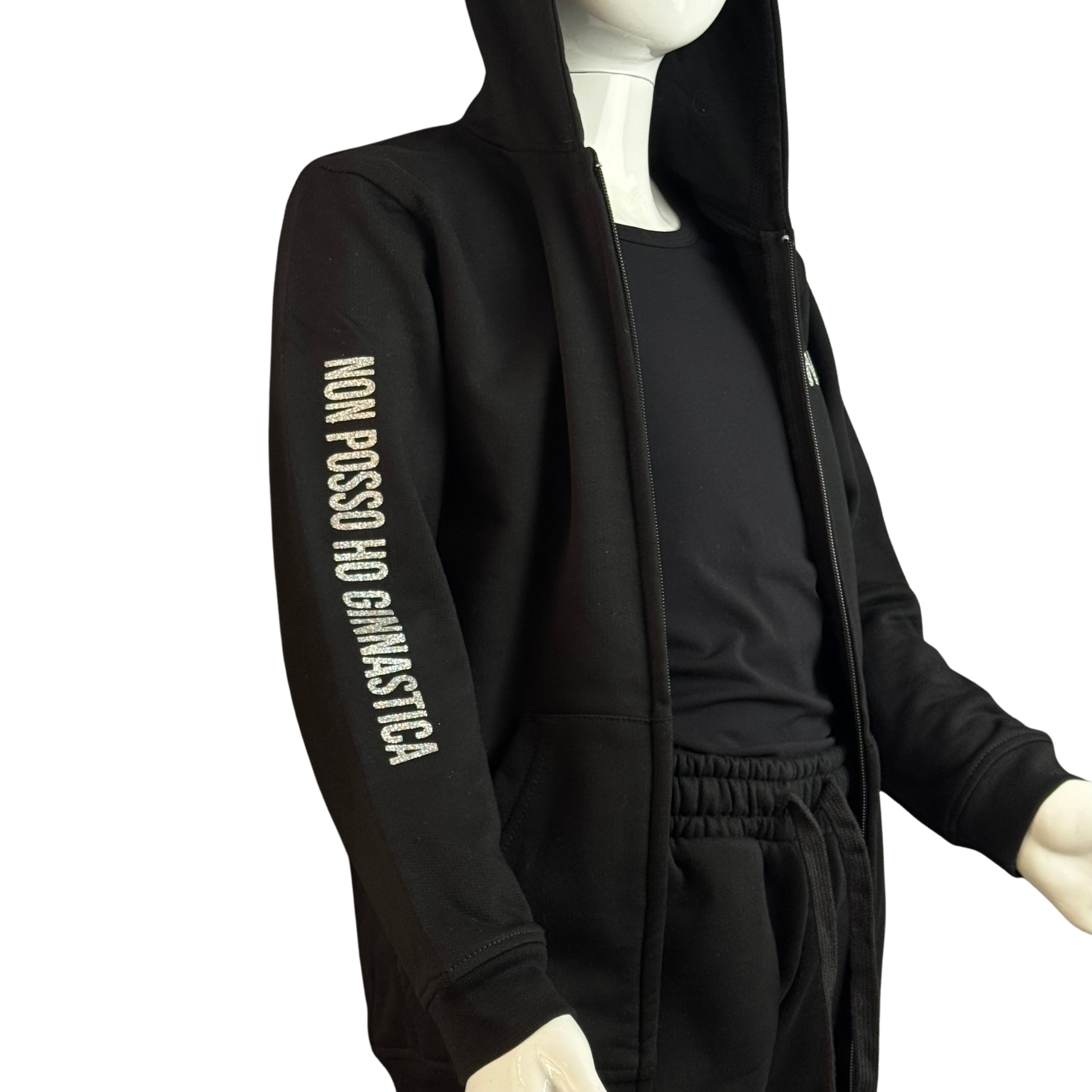 La Felpa con cappuccio e zip "Non posso ho ginnastica" è l'outfit perfetto chi vive ogni giorno con passione la ginnastica.