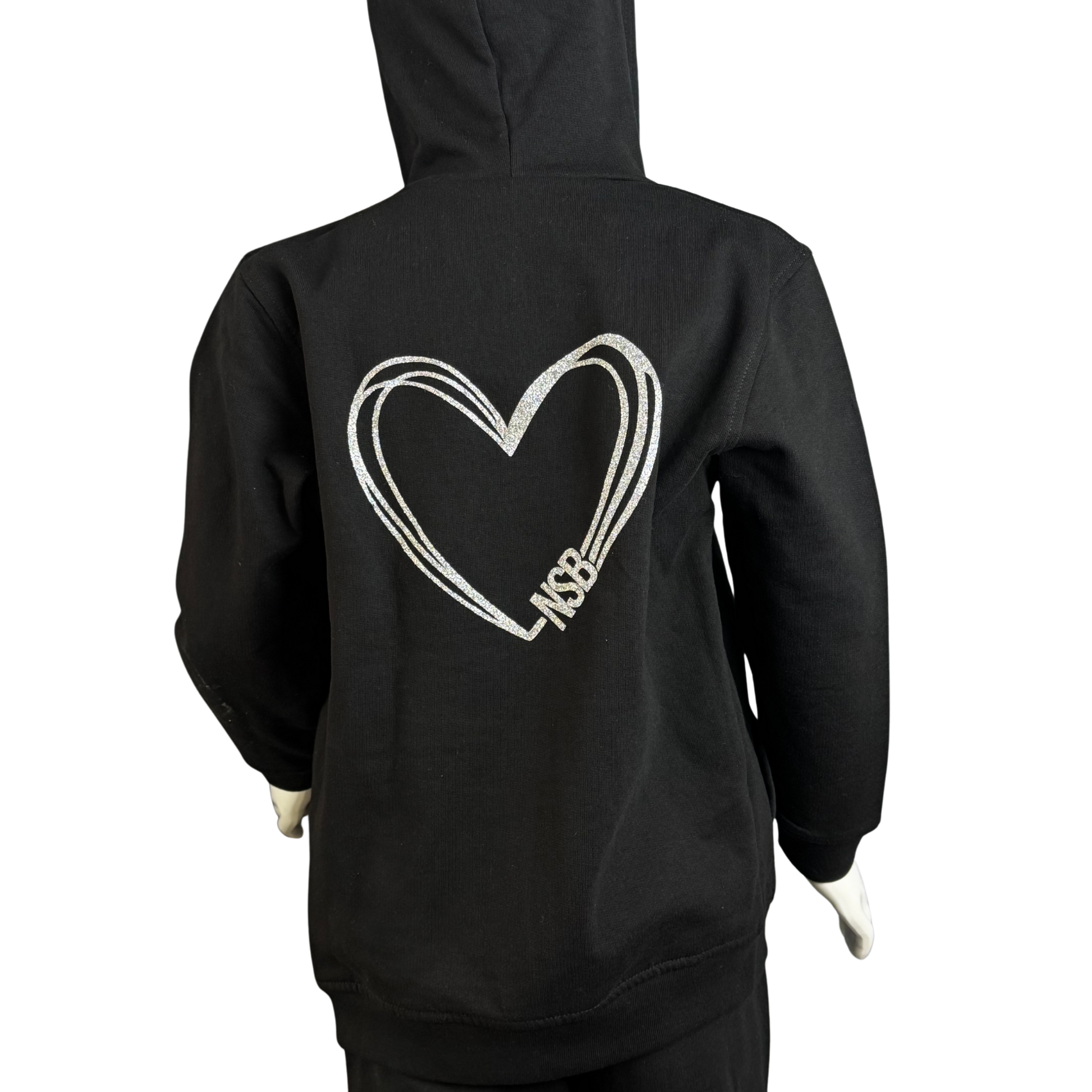 Sul retro un grande cuore glitterato con logo NSB aggiunge un tocco distintivo e femminile, perfetta per allenamenti, trasferte o per un look sportivo casual fuori dalla palestra.
