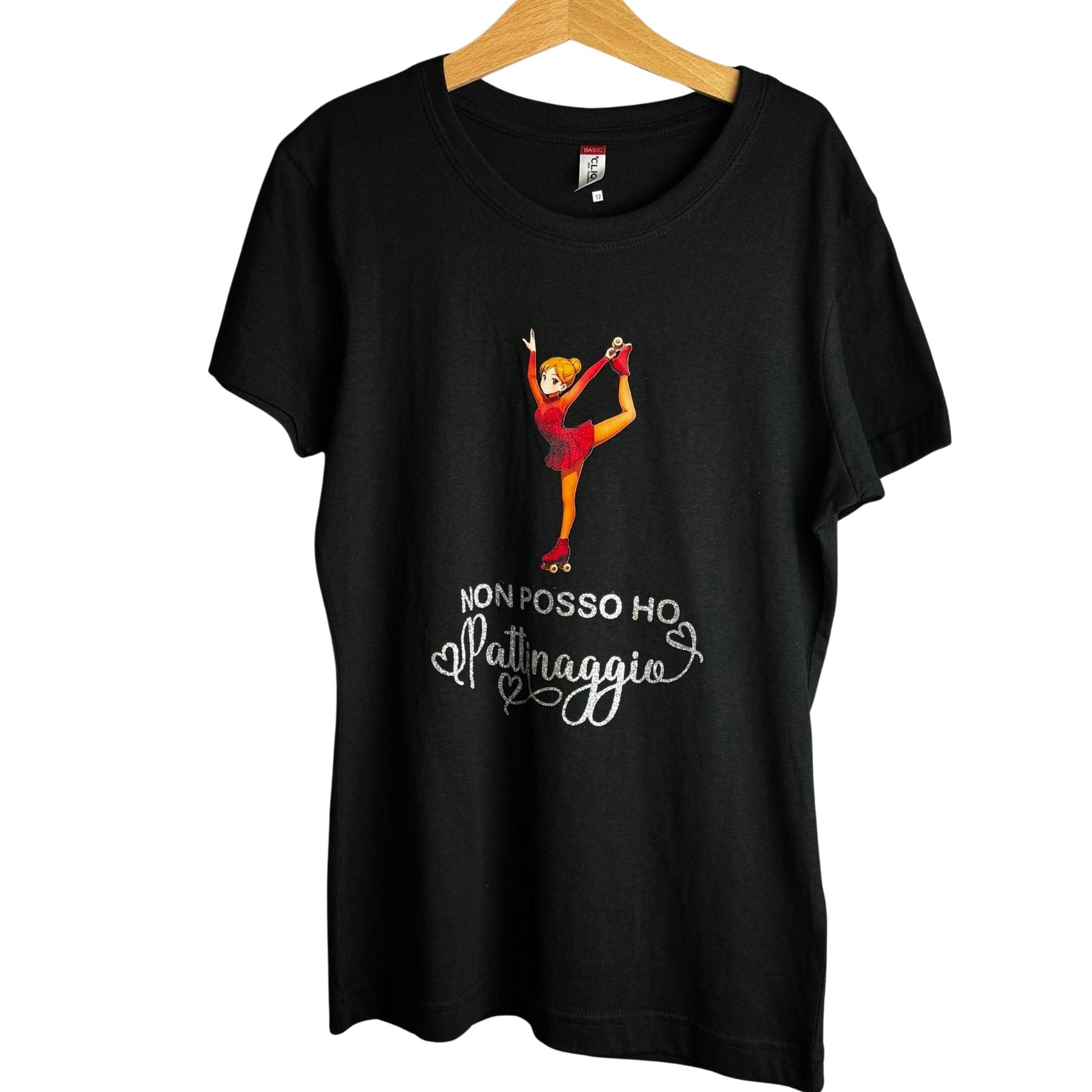 T-shirt “Non posso, ho pattinaggio” – Glitter Argento